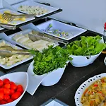 Сытный континентальный завтрак, гостеприимный персонал. У нас был большой номер с фантастическим видом. Безупречно чистый отель, вблизи чистого пляжа. Ресторан в отеле был большой, бассейн - чистый. Можно оставить машину на бесплатной парковке, что на территории...